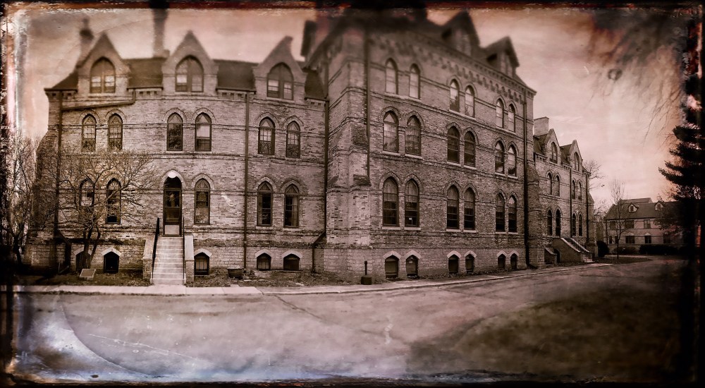 Racine artist Mary Nelson became the director of the Ferkelburg Historical Society in order to provide these tintypes taken by the late and beloved Ferkelburgian, Early Octavio Bumbershoot. According to his bio, “While revered for his prowess behind the lens of his camera, Bumbershoot had no recollection of every taking a picture. When presented with a camera during his waking hours, he fumbled with the device and uttered words unprintable. Asleep, however, he was a master, rivaling Ansel Adams and Henri Cartier Bresson. He roamed the streets while fast asleep, snapping pictures on High Street and capturing parades, picnics, and lake outings like no other, as well as some of Ferkelburg’s historic buildings.”