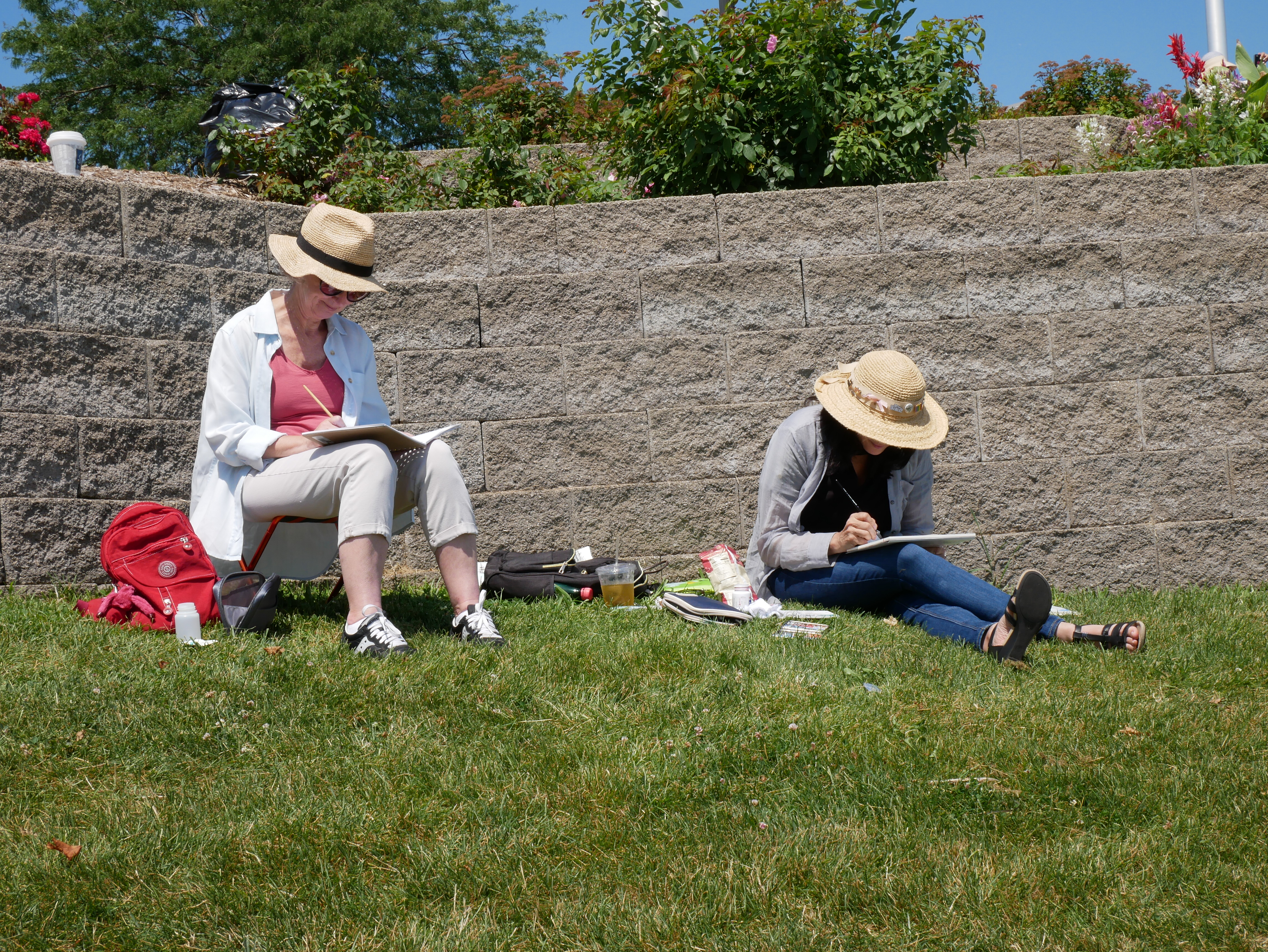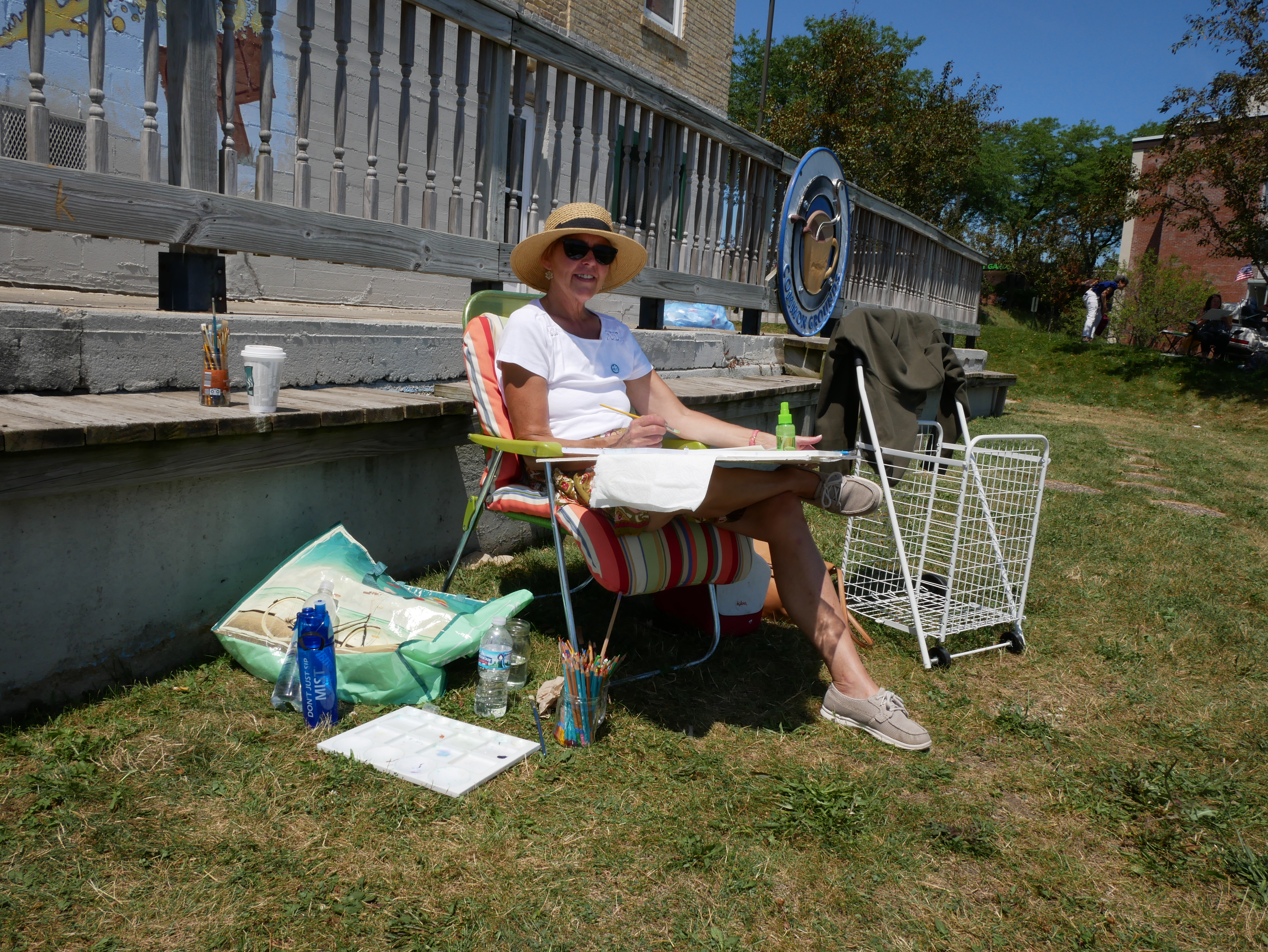 You don’t need to fly to California or pay money to take online classes in order to awaken your inner artist. There are opportunities all around for artists, no matter their talent level, to get together, learn, and share their work. I’ve sketched with groups in parks, a cemetery, on our lakefront, at the Racine Zoo, and once in a used tire shop that’s also home to several exotic birds. My art-making collective, the Krazines, met the Urban Sketchers of Chicago during Kenosha’s Tall Ship Festival in 2019 and enjoyed our time together, capturing these massive sailing vessels onto our pages. Since then, we’ve joined them for adventures in Evanston and Chicago, Illinois.