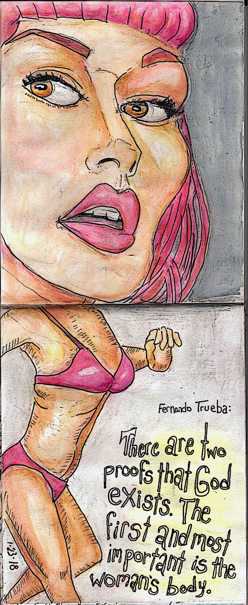 Another decade passed before I discovered my own way of making morning pages. Rather than pen my miseries, I drew instead. I created pictures of what was in front of me. I also illustrated what interests me: curmudgeons, pinup girls, assorted ne’er do wells, and jalopies.