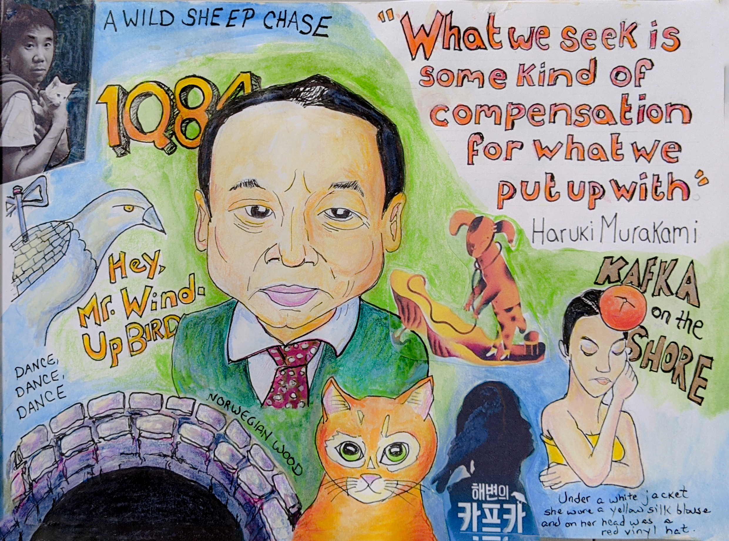 I tried to capture a slice of Murakami’s world in my sketchbook and drew a caricature of the writer for publication in my little magazine, Moss Piglet, last year.
