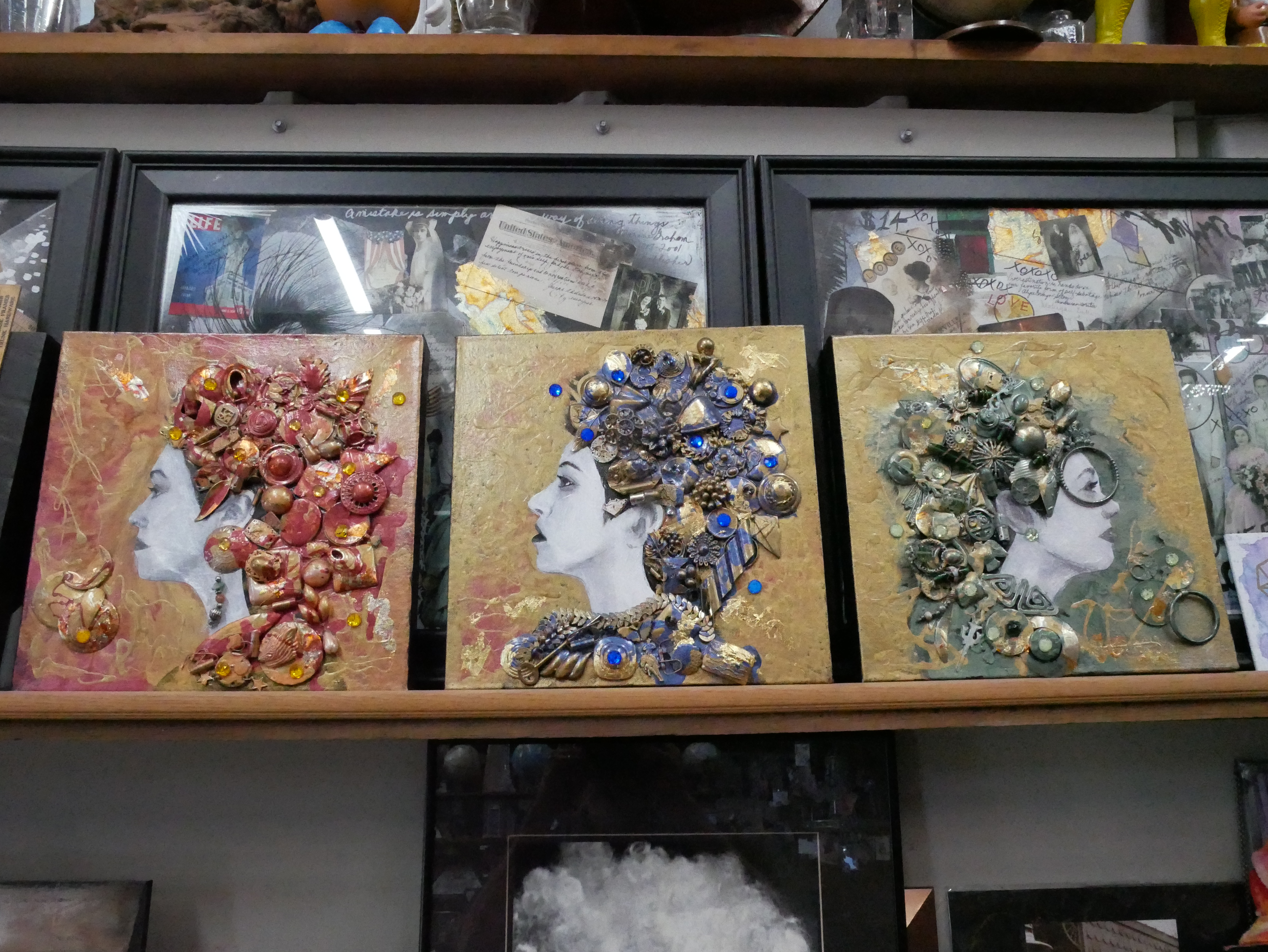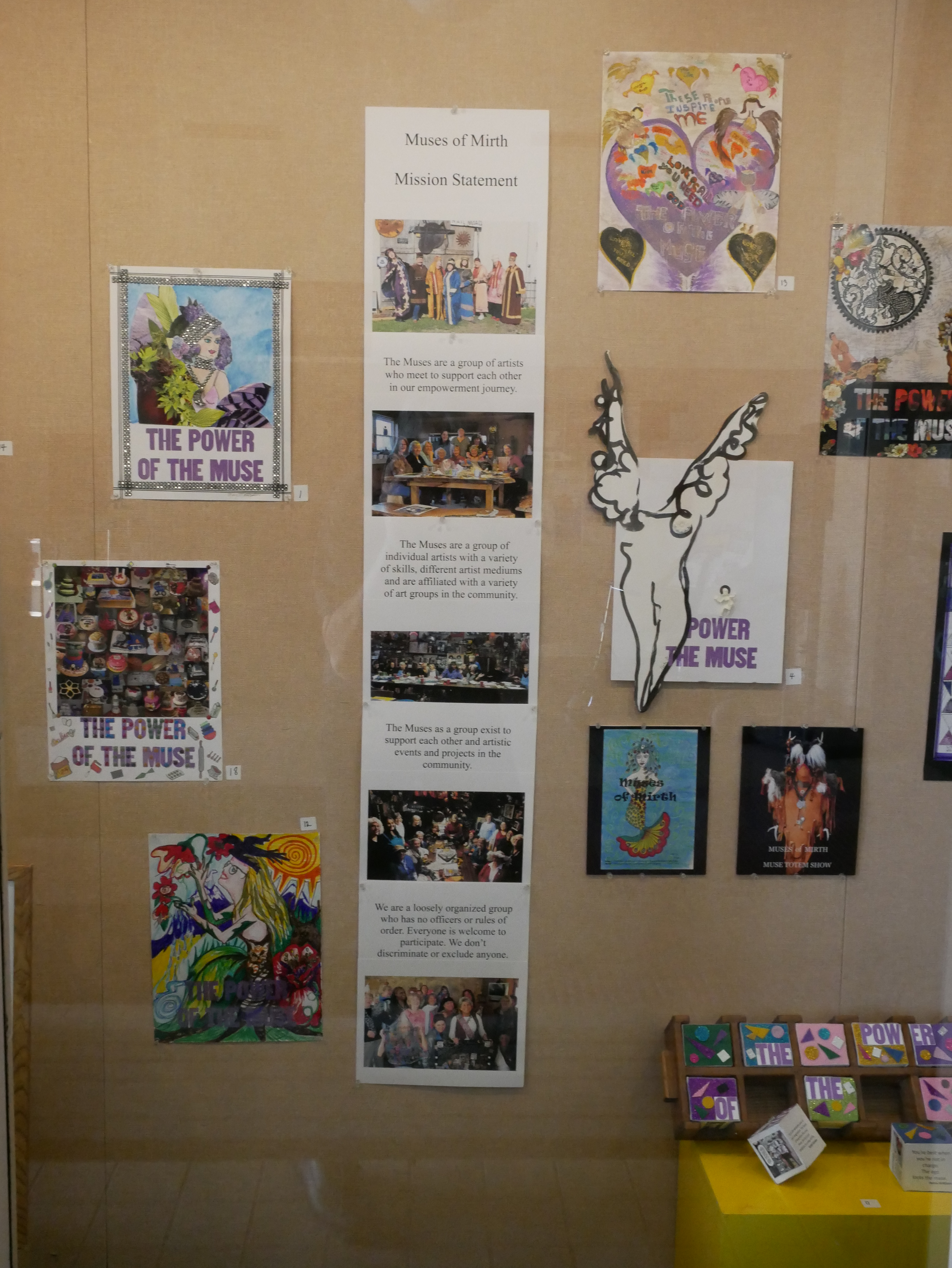 Over the past decade, she’s organized many Muses of Mirth activities, including gallery exhibits, postcard exchanges, and studio tours, as well as published several periodicals, featuring Muses’ art. With the the help of Samira Gdisis of the Black-Eyed Press, she put together The Power of the Muse display at Kenosha’s Northside Library.