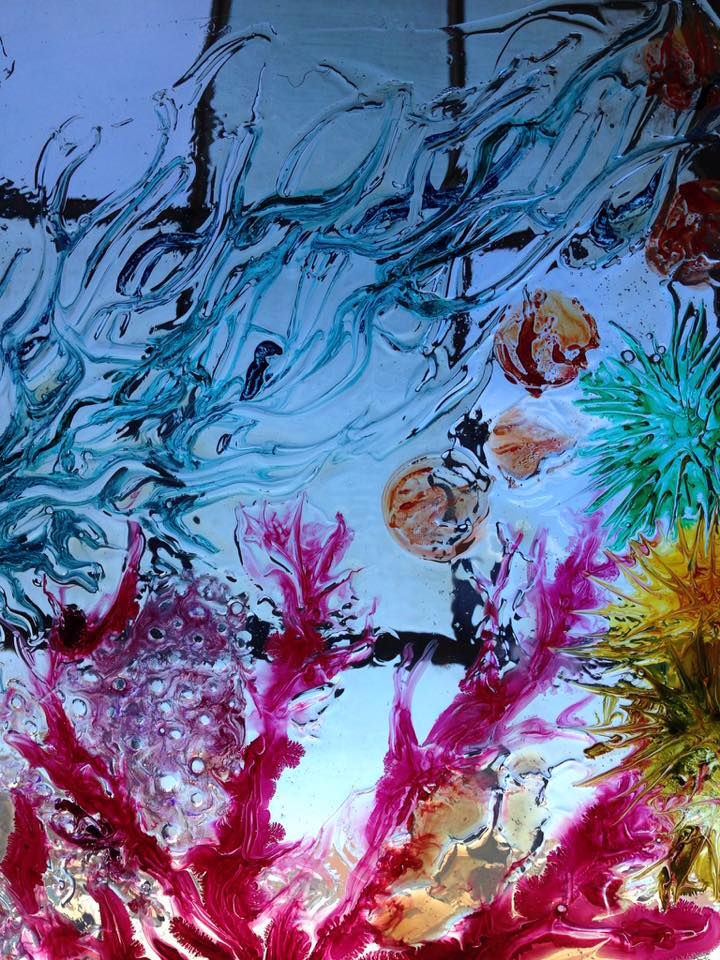 On a recent visit to her studio, Samira showed me several of her transparencies – acrylics painted on plexiglass – and demonstrated how their colors come to life when light is projected through them.