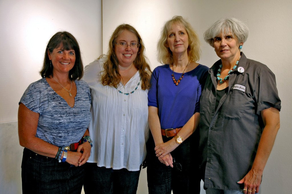 The word incredible may be overused, but it’s appropriate to describe not only the physical space at 16th Street Studios, but the people who inhabit it. The sense of community is palpable. The above photo shows a few of the faces there: Racine Arts & Business Center owner Emily Rench Montgomery; Samira Gdisis of The Black-Eyed Press; and two of my third-floor neighbors, artists Diane Levesque and Juli Janovicz.