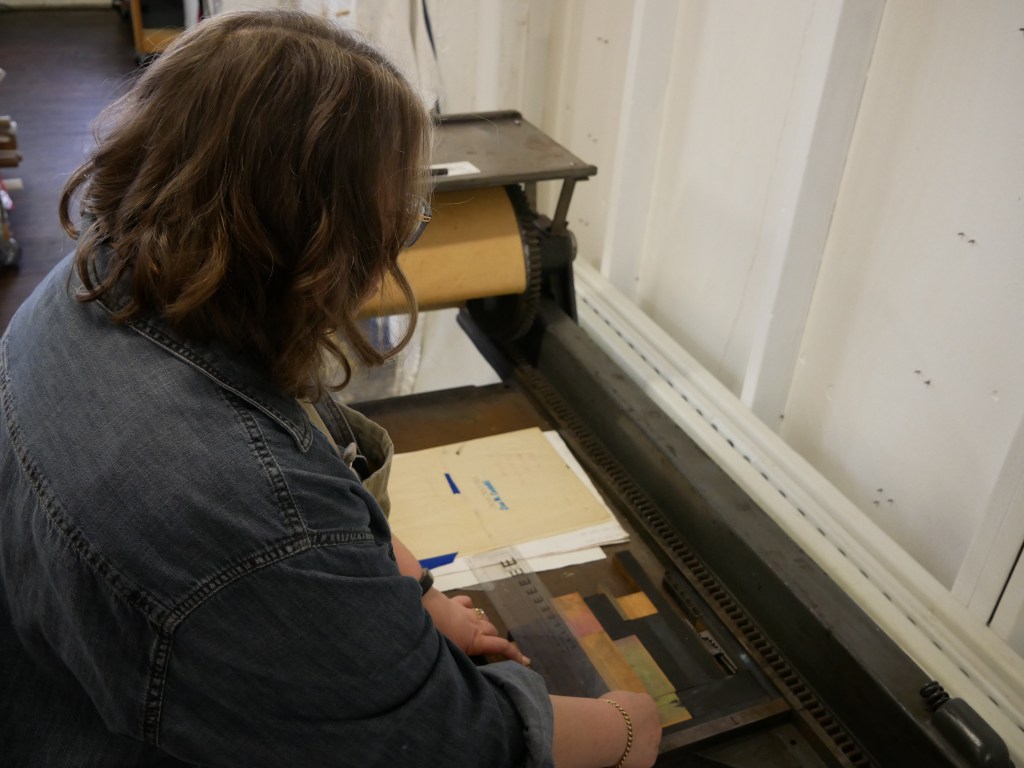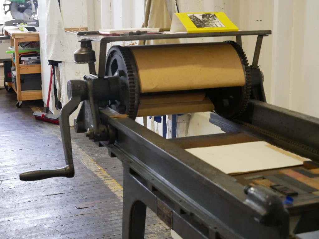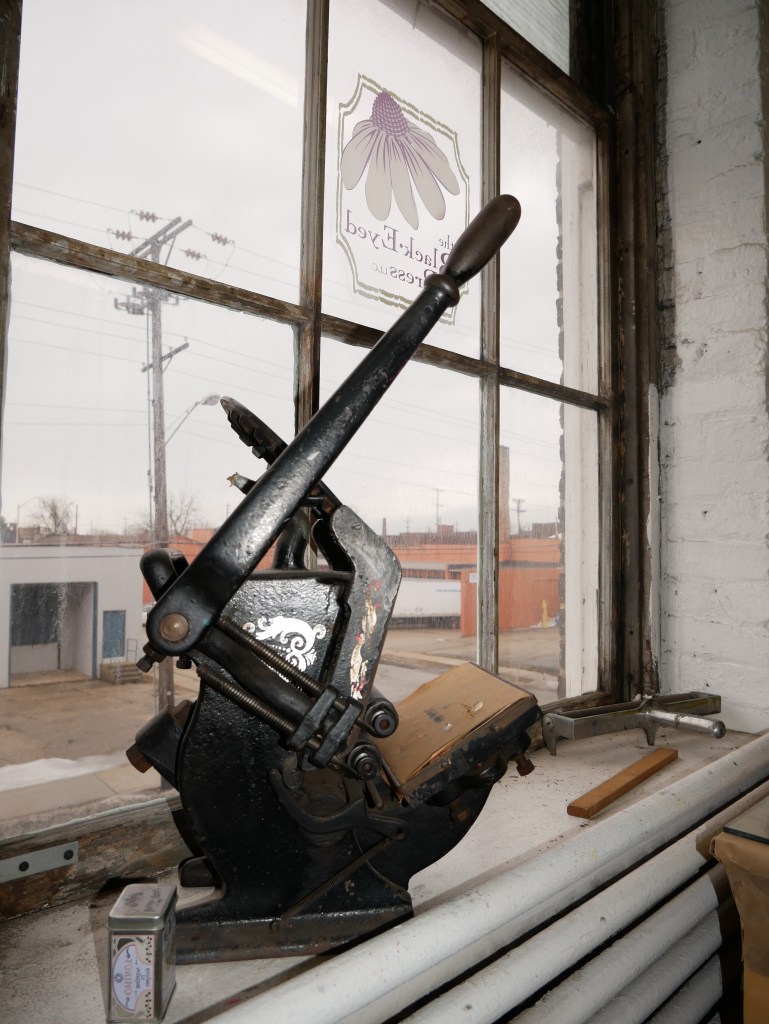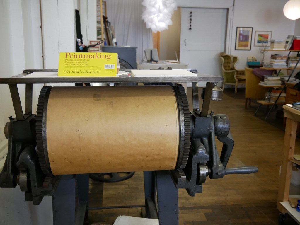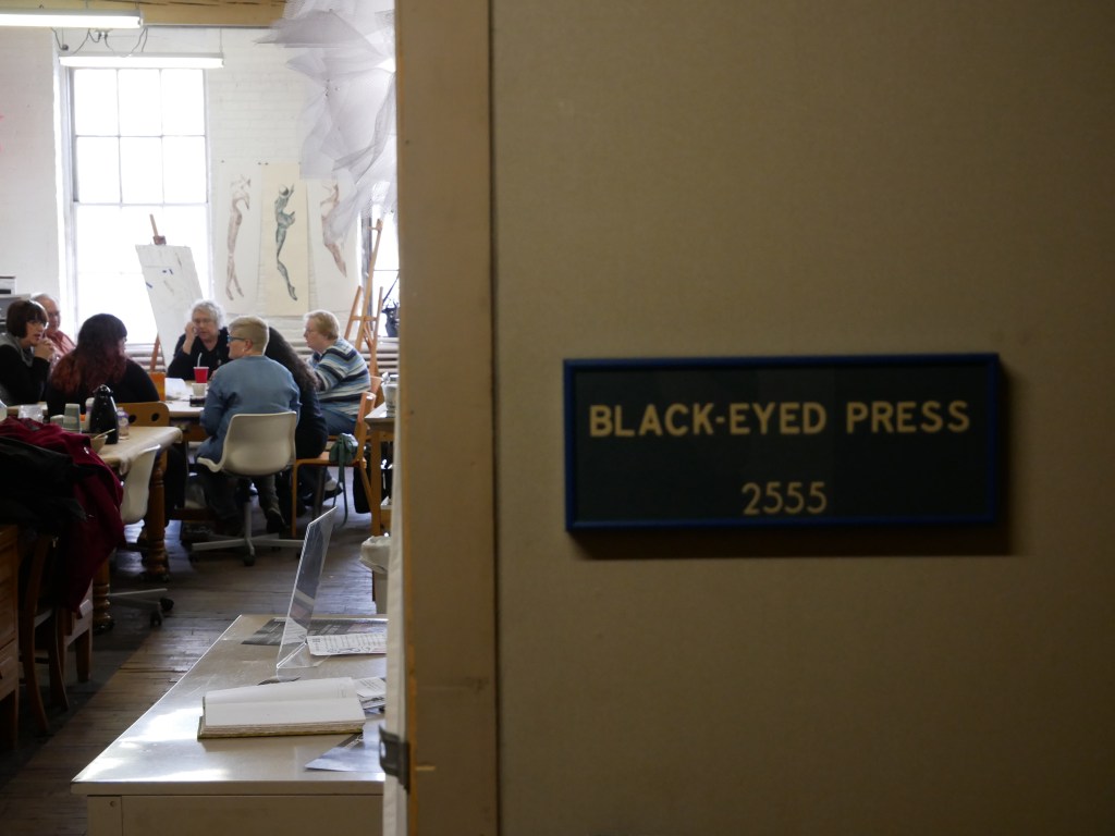 Just as Peg Lukow made it possible for Jerry to become a 16th Street Studios resident, these two artists were among the first to greet Samira Gdisis when she sought to relocate her business, The Black-Eyed Press, from Racine’s downtown. Samira’s artistic journey began in the performing arts with ballet and concert flute. She didn’t draw until she was in her 30s, reentering higher education where she studied under David Holmes at UW-Parkside, and fell in love with printmaking.