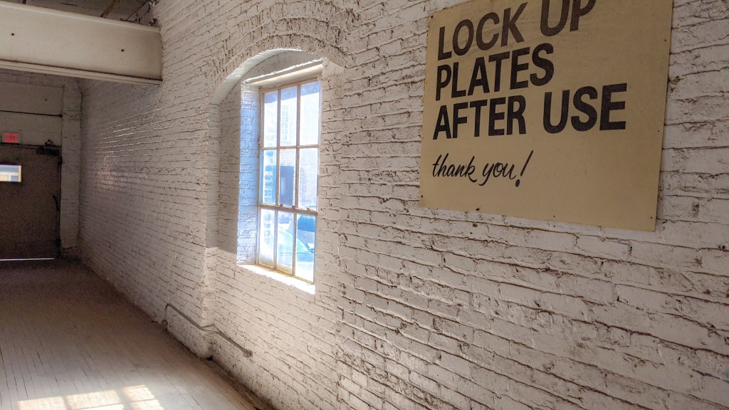 A frequent guest, Terry Evans, provides a list of why she adores this place, “I love the fire doors with the lead weight pulls, the steel floor running down the middle, the wooden flat bed carts with iron wheels, the barn door at every studio, and the service elevators with their pull-down gates. (How fun it that?!)” She continues, “I’ve read about artist co-ops in San Francisco. I’ve been to Mitchell Wagon Apartments in Racine and Karcher Artspace Lofts in Waukegan, but nothing comes close to the 16th Street vibe. When Trace Chiodo (of Chiodo Design) told me he walked the rounds for three months with the security guard, exploring every nook and cranny in the building, I was more envious than I dared to show.”
