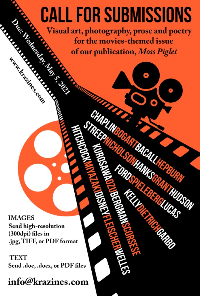 Many other artists contributed to the Movies-themed issue of the Moss Piglet zine including Ashi Tara, DW Pleez, Mary Bamborough, Mary Nelson, Rhianna O’Shea, Sylvia Pavlova, Ted Haines, Terry Evans, Wes Fallon, PM Fallon, Jo Thul, and Zelia Zeta. A link to a digital version of this publication will be posted soon for this article.