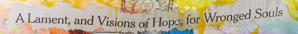 The title of this week’s article, A Lament, and Visions of Hope, for Wronged Souls, comes from a New York Times headline from March 2020. The accompanying story was a review of an Off Off Broadway musical; however, from a distance of 15 months, the headline feels prescient, not only because of the pandemic, but for many other events that continue to affect humankind on a global and personal level.