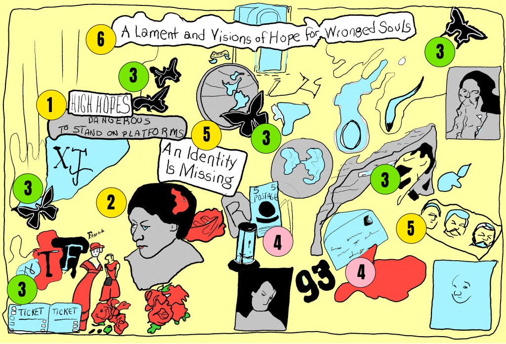 I handed over the sheet to Arian without commentary. Several weeks later, she returned with the final piece. For this article, I will go through many of the components found in the collage and share our thoughts on them, while inviting your own contemplations.