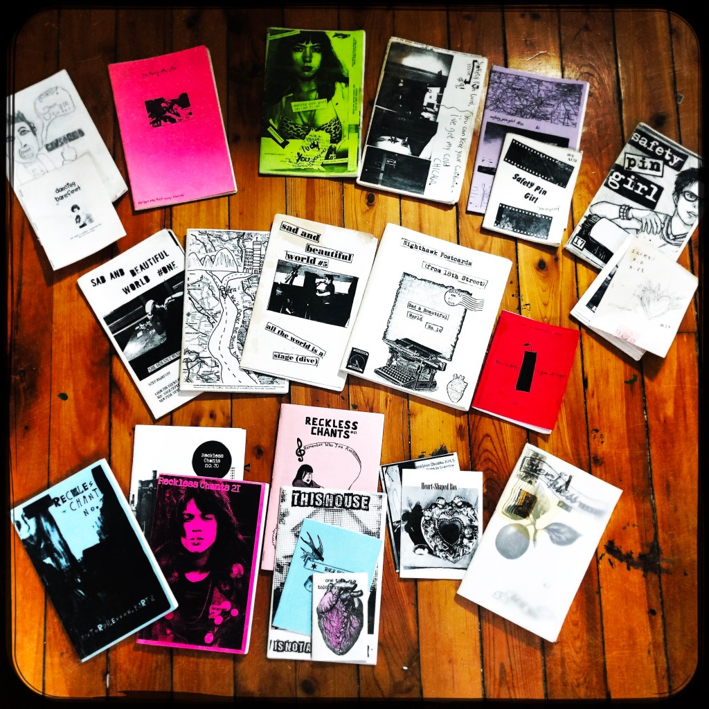 In October of 1990, a couple months before I turned nine, I took some allowance money I’d saved up and bought a copy of Sassy magazine. I may have been a little too young to really get it, but…I was searching for something, I didn’t know what, and I found it, glimpsed it anyway, in that issue of Sassy. In that issue, I read about zines, and about The Sassiest Boy in America (aka Ian Svenonius, forever the sassiest boy in my heart), and I became aware that there was a whole world out there, different from the one I lived in. A world of art and pain and love, of boys and girls/men and women who did interesting things, of wild music and dangerous ideas. I was so, so young, but I knew that was what I wanted. I felt it in my freckled little-kid flesh—that I would do anything to be part of that world. Over the next few years, zines became more a part of my world. It was the ’90s, a heady time when everyone and their uncle wrote a fanzine, and I’d often find them at record shops, bookstores, or cafes. By 1993, I’d declared myself a riot grrrl, and began sending away for zines in the mail.