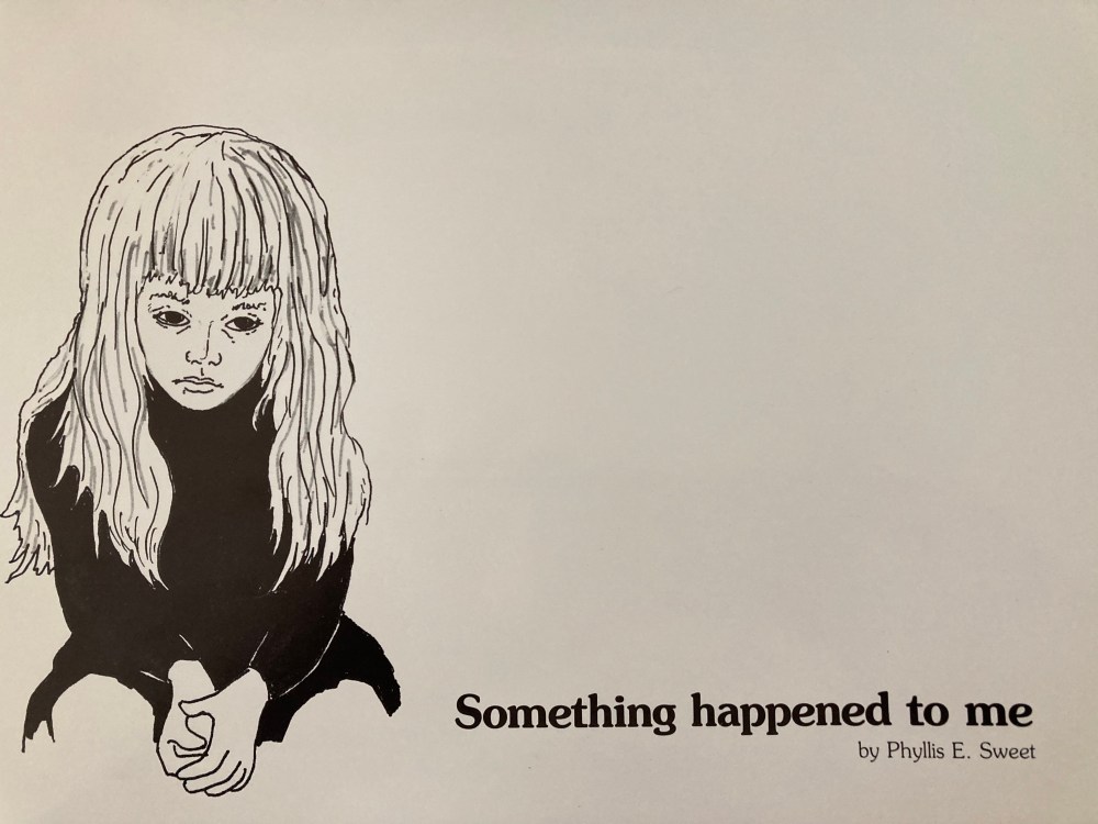 Barbara writes: Five years, bored and worried about our survival, we finally ran out of money, yet Jeanne and school psychologist friend Phyllis Sweet forced me to partner with them. Phyllis gave us two pages of her handwritten words for her children’s sexual abuse therapy book, Something Happened to Me. Accepting the inevitable, now as a partner, I became the manager and accountant and shipping clerk. I had to carry heavy boxes of books to fill our orders, some even to other countries. I tried not to get edgy when the other partners ordering me around.
